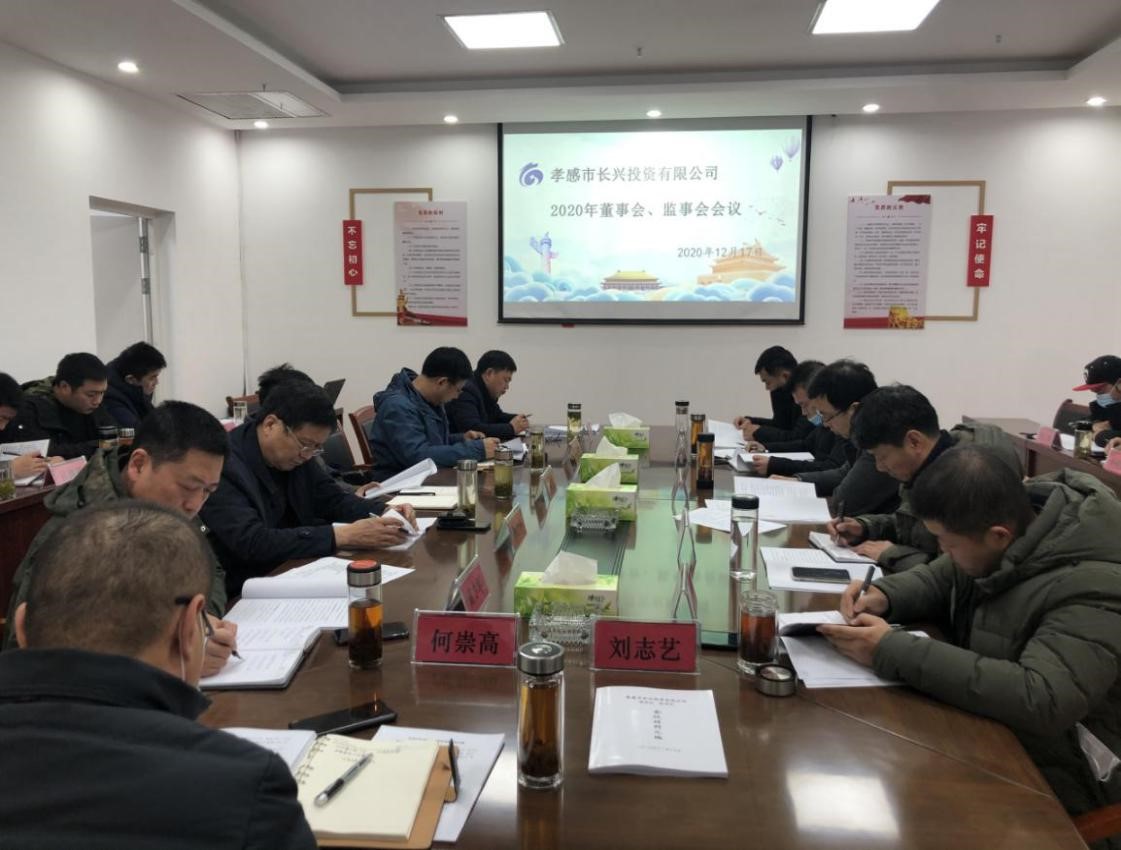 2020年12月17日下午,孝感市長(zhǎng)興投資有限公司召開了董事會(huì)、監(jiān)事會(huì)。公司董事長(zhǎng)胡格峰主持會(huì)議,公司各董事、監(jiān)事及高管共同參加會(huì)議,本次會(huì)議應(yīng)到董事13人,實(shí)到董事11人,應(yīng)到監(jiān)事10人,實(shí)到監(jiān)事10人,符合法律程序。