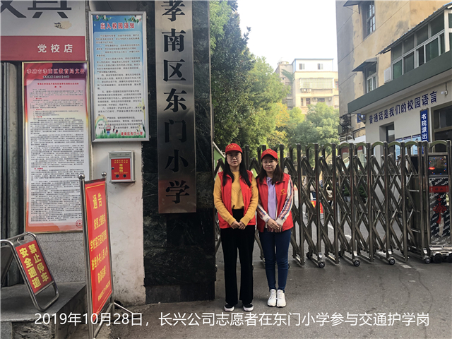 依據“不忘初心,牢記使命”主題教育活動和以加強校園安全、預防青少年違法犯罪、安全維穩(wěn)工作為主要內容,保護孩子們安全上學,長興公司組織干部職工于2019年10月28日至10月29日,在孝南區(qū)東門小學開展了“文明交通護學崗”志愿服務活動,為孩子們營造了一個安全,溫馨,暢通的安全通道?!皭坌淖o學”志愿服務隊在每天上午7::30-8:30,下午5:15-6:00上崗,協(xié)助執(zhí)勤交警勸阻亂穿馬路的行人和非機動車,維護交通秩序,引導學生安全出校園,安全過馬路,教育學生養(yǎng)成良好的行為習慣,做文明有禮貌的好學生。